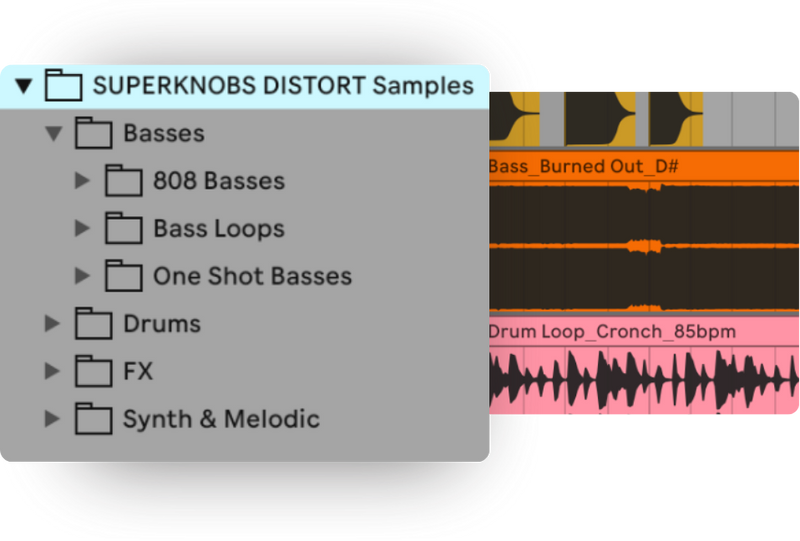 61 unique samples. Basses, loops, drums, FX, and synths. All with an edge of distortion.